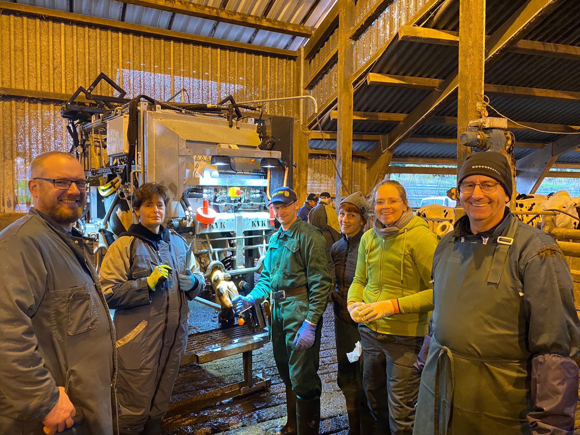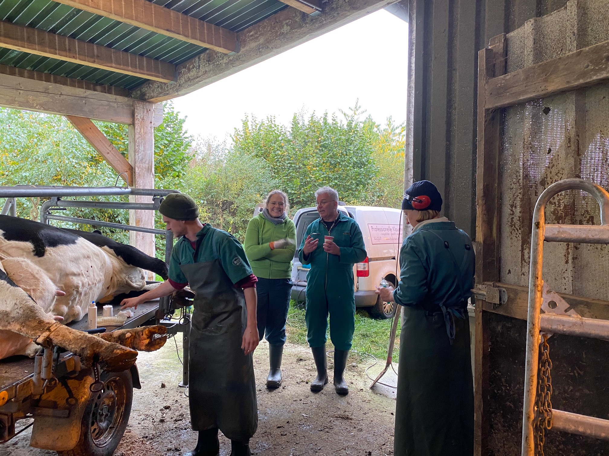 Auf einem Milchviehbetrieb in Wilstedt wurden an 3 Klauenständen in kleinen Gruppen die Sanierungsstrategien für Klauenerkrankungen in die Praxis umgesetzt. Durch die begrenzte Teilnehmerzahl hatte jeder die Gelegenheit, die einzelnen Stationen zu besuchen und sich praktische Tipps und Vorgehensweisen erklären zu lassen.
